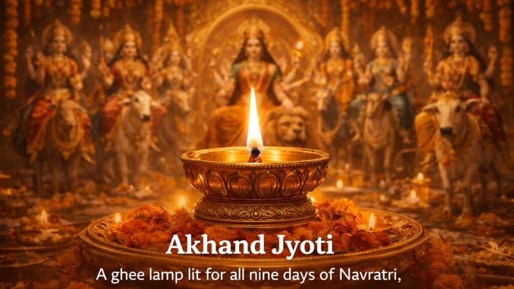 A: Akhand Jyoti is a ghee lamp lit for all nine days of Navratri, symbolizing continuous devotion and divine energy.